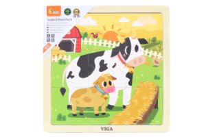 Dřevěné puzzle 9 dílků s obrázkem kraviček.