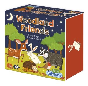 Balení obsahuje 8 puzzle lesních zvířátek z pevného kartonu, každé se skládá ze 2 dílků.