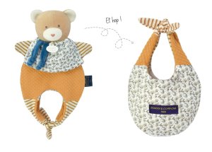 Přítulná plyšová hračka na spaní Nattou ve tvaru medvídka s vyšívanou tvářičkou a jemným bryndákem.