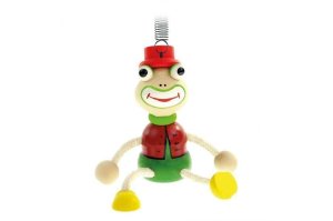 Pružinová závěsná veselá žabka ze dřeva, k zavěšení k dětské postýlce, na okno, apod.