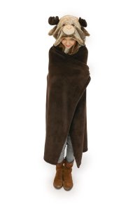 Zábavná, měkoučká, hřejivá deka s kapucí s motivem zvířátka a dvěma rohovými kapsami na ruce s motivem zvířecích tlapek.