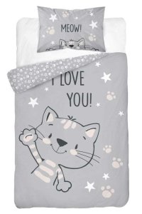 DETEXPOL Povlečení do postýlky Kočka I love you 100/135, 40/60 Dětské bavlněné povlečení do postýlky, motiv peřiny je z každé strany jiný, zapínání na zip, praní na 40°C Materiál: 100% Bavlna Rozměr: …
