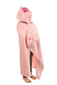 Zábavná, měkoučká, hřejivá deka s kapucí s motivem zvířátka a dvěma rohovými kapsami na ruce s motivem zvířecích tlapek.