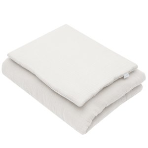 Mušelínový set české značky New Baby obsahuje polštářek a peřinku s výplní.