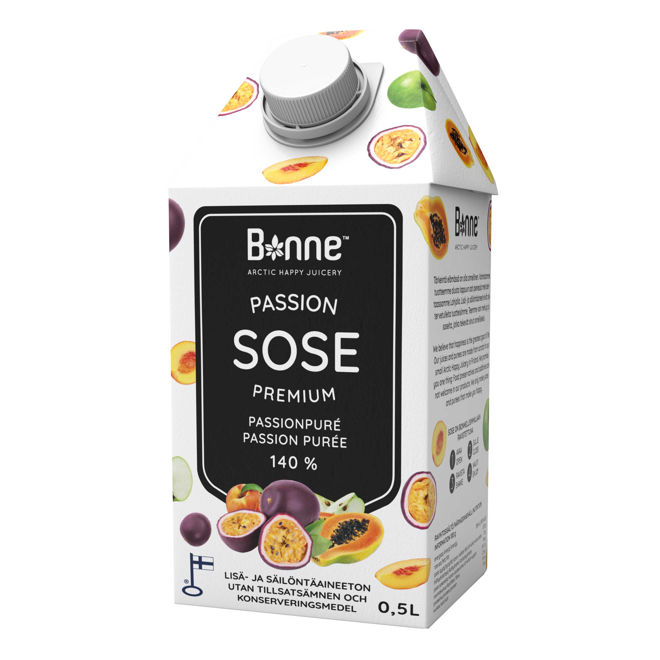 Ovocné pyré 140 % mučenka. Balení 0,5 l.