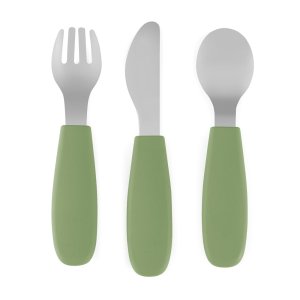 Čtyřdílný jídelní set od Nattou z měkkého silikonu je velmi praktický, snadno uchopitelný a protiskluzový.
