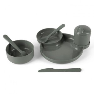 Dárková jídelní sada vyrobená z recyklovatelného bioplastu.