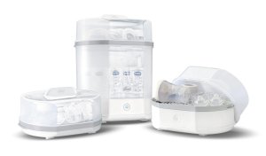 Přístroj 2v1: sterilizátor a sušička kojeneckých lahví včetně příslušenství.