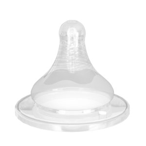 Silikonový kulatý dudlík je vhodný na kojenecké láhve se širokým hrdlem.