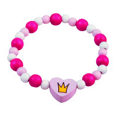 Náramek z dřevěných korálků s obrázkem korunky bude ozdobou každé malé slečny.