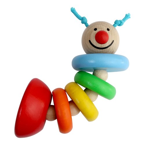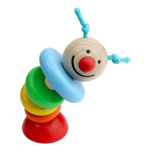 Dřevěná hračka s motivem housenky. Hlavní vlastnosti: vhodné i při procvičování motoriky rukouvýrobek splňuje požadavky EU na bezpečnost hračekvhodný pro děti od 6ti měsícůvýška figurky je 11,5 cm a je připevněna na papírové kartě