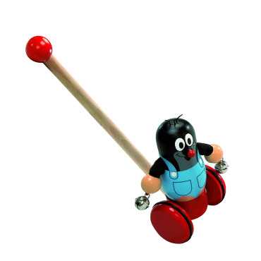 Strkadlo Krteček je dřevěná hračka na tyči, která se při pohybu kolébá ze strany na stranu a cinká rolničkami.