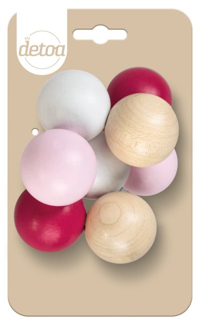 Osm různobarevných pohyblivých kuliček spojených na šňůrce. Pomáhají rozvíjet jemnou motoriku rukou a jsou vhodné pro děti od 6ti měsíců. Výrobek splňuje požadavky EU na bezpečnost hraček. Průměr jednotlivé kuličky je 3 cm. Hračka je připevněna na ekologické papírové kartě. Hlavní vlastnosti: procvičuje jemnou motorikuvýrobek je zdravotně nezávadnýsplňuje všechny normy EU pro bezpečnost hračekprůměr jedné kuličky je 3 cmpřipevněno na papírové kartěvyrobeno v České republice