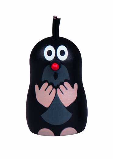 Dřevěná figurka Krtečka s magnetem. Výrobek splňuje požadavky EU na bezpečnost hraček a je vhodný pro děti od 3 let. Rozměry výrobku jsou 54 x 30 mm. © Zdeněk Miler