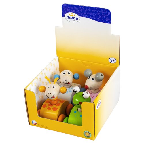 Cena je uvedena za 1 ks.  Sada obsahuje 4 kusy autíček - myška, ovečka, žirafa a žabka. Při zmáčknutí zvířátka autíčko píská.  Hlavní vlastnosti: výrobek splňuje požadavky EU na bezpečnost hraček vhodný pro děti od 1 roku