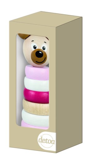 Tradiční hračka v atraktivních barvách, s roztomilou hlavičkou medvídka, je vyrobena z masivního dřeva. Pomáhá dětem s rozvíjením motorických schopností a také s rozpoznáváním tvarů i barev. Zároveň se snadno stane vkusnou ozdobou každého dětského pokojíčku. Robustní provedení s kruhovými tvary a zaoblenými hranami je přizpůsobeno malým dětským ručkám a stimuluje hmat. Hračka byla vyrobena v České republice. Hlavní vlastnosti: 8 dílů skládačkyrozvíjí motorické schopnostitradiční a odolná hračkavyrobeno v České republice
