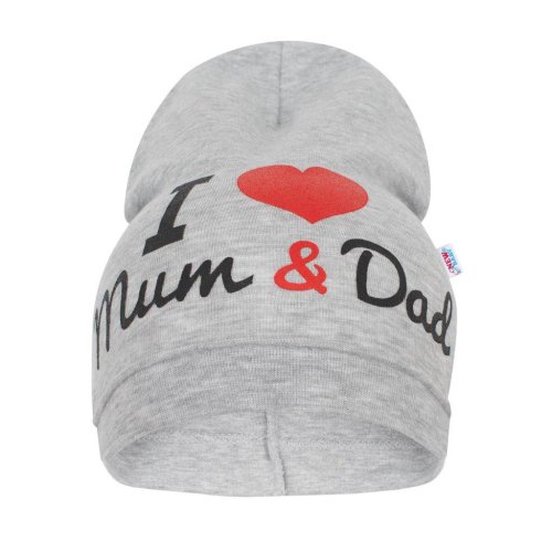 Krásná bavlněná čepička New Baby I Love Mum and Dad. Čepičku zdobí krásný obrázek a je ušita z prodyšného materiálu, proto je vhodná pro jarní i podzimní dny. Materiál je pružný. Ideální pro miminka od 3 do 9 měsíců. Složení: 95% bavlna 5% elastan. Obvod kolem hlavičky cca 38-42 cm.