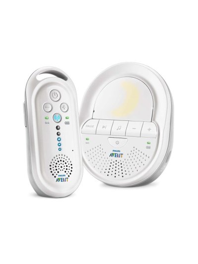 Dětská chůva Avent. Zajišťuje spolehlivé fungování bez nebezpečí rušení, venku až na vzdálenost 330 metrů a uvnitř 50 m. Chůva je obousměrná. Pro větší pocit bezpečí dítěte je chůvička vybavena nočním osvětlením a příjemnými ukolébavkami. Na rodičovské jednotce je umístěna signalizace pro případ přerušení signálu, a také je vybavena dobíjecího základnou, indikátorem úrovně zvuku. Pečovatelku lze nastavit do režimu ECO, který šetří energii. Rozměry: Vysílač (dětská jednotka) - 22x15.6x9.6 cm.