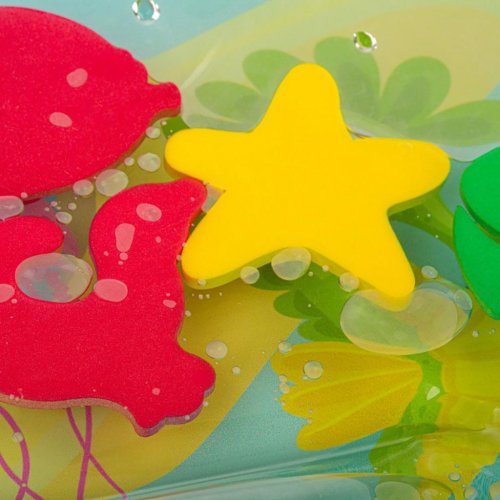 Interaktivní podložka vyrobená z kvalitního materiálu, který zaručuje mimořádnou odolnost. Okraj podložky nafoukněte a do středu napusťte vodu. Uvnitř je 5 barevných vodních živočichů, kteří se pod váhou dítěte budou pohybovat v prostoru naplněném vodou. Během hraní na podložce se dítě učí používat různé svalové partie k udržení rovnováhy a samostatnému pohybu. Zvyšuje tím sílu a vytrvalost nohou, paží, břicha a zad. Poté co si dohrajete, vylijte vodu a vypusťte vzduch.