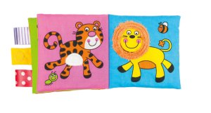 Knížka je vyrobena z příjemného měkkého materiálu. Hlavy zvířátek obsahují různé látkové materiály a mohou vydávat zvuky, proto je knížka ideální pro podpoření hmatových, zrakových i zvukových vjemů dítěte. Knížku je možné prát v pračce. Vhodné pro děti již od 0 měsíců.UPOZORNĚNÍ Obal není hračka, před použitím hračky ho odstraňte z dosahu dítěte, může způsobit zadušení.