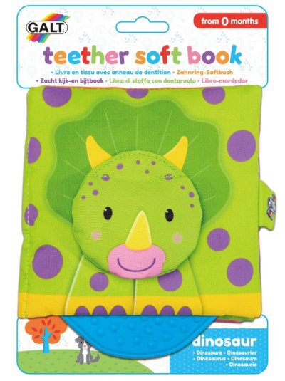 Na přední straně naleznete pískací hlavu dinosaura pro ještě větší zábavu vašeho dítěte. Každá stránka je vyplněna speciální šustící hmotou a navíc na ní naleznete aktivní prvek, který vydává chrastící zvuky. Knížka je ideální pro podpoření hmatových, zrakových i zvukových vjemů dítěte. Hračka je měkká, bezpečná a je možné ji prát v pračce. Knížka obsahuje i kousátko k usnadnění prořezání zubů.