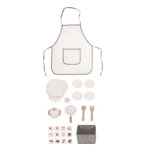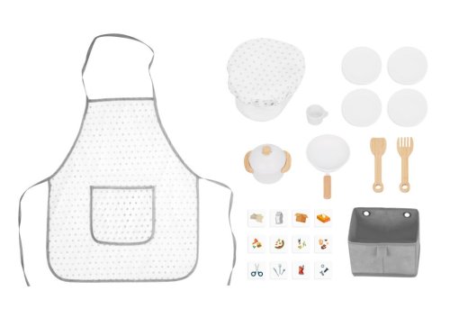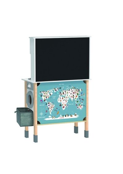 Je libo čerstvý koláček přímo z pece? Nebo snad máte zálusk na něco smaženého? S touto kuchyňkou můžete mít menu, jaké se Vám zlíbí. Je totiž plně vybavená! Najdete zde vše, co v žádné moderní kuchyni nesmí chybět - sporák s troubou, myčku, mikrovlnku, dřez, kávovar a samozřejmě nádobí s náčiním, jako jsou talíře, hrnec, pánev, hrneček a další. Na boční straně kuchyňky je umístěna pračka, ze které je možné vyprané prádlo uložit do zavěšeného odnímatelného košíku. Ani zadní strana kuchyňky nezůstala nevyužitá. Na praktickou černou tabuli mohou děti napsat vzkaz, sepsat suroviny receptů nebo něco nakreslit. Jako inspirace jim třeba poslouží zábavné mapa se zvířátky, která je také zezadu. Tak si nasaďte kuchařskou čepici, oblečte praktickou zástěru a můžete začít vařit. Jelikož nám záleží na planetě Zemi, nesmíme také zapomenout na koše na třídění! Hlavní vlastnosti: součástí je bohaté příslušenstvímultifunkční, rozmanité využitírozvíjí komunikační a sociální dovednostivyrobeno ze dřeva s certifikací FSC® Značka a certifikát FSC® (Forest Stewardship Council) zaručuje, že dřevo, ze kterého byl produkt vyroben, nebylo vytěženo nelegálně a pochází z lesů obhospodařovaných šetrným či přírodě blízkým způsobem, ve kterém jsou dodržovány přísné environmentální a sociální požadavky. Značka FSC® na výrobku znamená, že svým nákupem pomáháte chránit lesy a podporujete šetrné, odpovědné či přírodě blízké hospodaření, díky kterému jsou naše lesy stabilnější, zdravější, mají přirozenou druhovou skladbu a lépe odolávají negativním následkům klimatických změn.