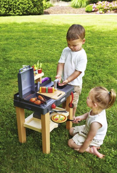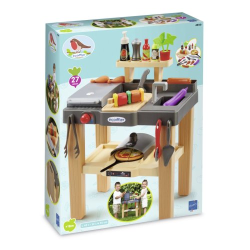 Letní kuchyňka Ecoiffier s pecí na pizzu a grilem je ideální volbou pro malé kuchaře od 18 měsíců. Děti si vyzkouší přípravu pizzy, grilování i mytí nádobí a užijí si spoustu zábavy pod širým nebem.