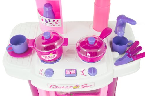 Malí kuchtíci uvaří oběd na dvou vařičích se samostatnými vypínači. Otočením knoflíků se rozsvítí a jsou slyšet zvuky vaření. Koláče a dorty upečou v troubě za zvuku mikrovlnky. Při nastavování teploty pečení se trouba rozsvítí a po určité době se sama vypne.