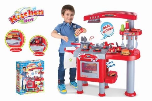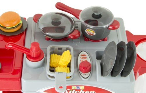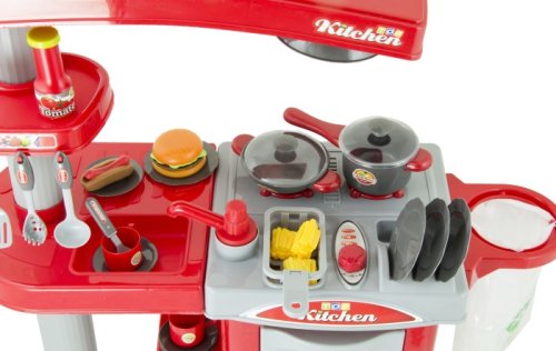 Dětská červená kuchyňka G21 je plně vybavena spotřebiči,