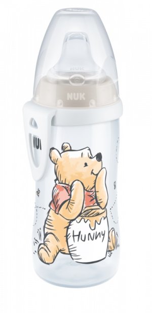 Dětská láhev NUK Activ Cup s atraktivním motivem oblíbeného medvídka Pú. Láhev velmi lehká, odolná a nerozbitná, opatřená silikonovým nekapajícím pítkem, které zabraňuje vylití nápoje. Má praktické víčko, aby zůstal náustek čistý. S klipem pro upevnění za pásek pro větší děti. Široké hrdlo láhve umožňuje její snadné čištění. Hlavní vlastnosti: extra lehkávyrobená z pevného a nerozbitného polypropylenuvhodná pro děti od 6 měsícůs klipem pro upevnění za pásekklinicky testovánobez obsahu BPA