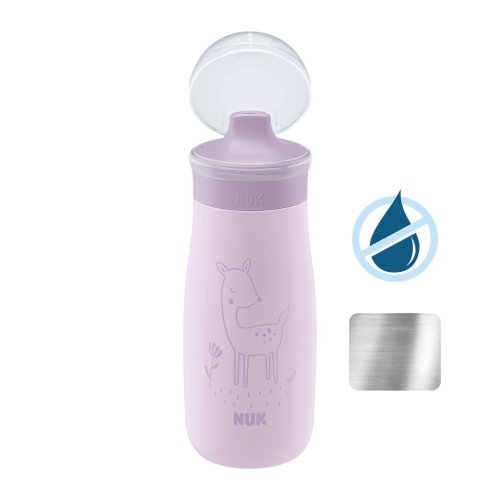 Dětská láhev NUK Mini-Me Sip nerez 300 ml (9+ m.). Nová láhev NUK Mini-Me Sip je vhodná pro děti od 9 měsíců. Vhodná pro děti – moderním a minimalistickým způsobem. Praktická a zároveň stylová. Nerozbitný plast pítka je vyroben z více než 90 % z přírodních surovin. Inovativní pítko hravě odolá dětským zoubkům. Jasný závazek k udržitelnosti a kvalitě.<BR>Charakteristika:<BR>- spolehlivý společník na každý den – pro děti od 9 měsíců<BR>- s pítkem odolným proti kousání, které je vyrobeno z více než 90 % z přírodních surovin – odolá malým dětským zoubkům<BR>- pevné nerozbitné tělo láhve z vysoce kvalitní nerezové oceli<BR>- odolná, netekoucí, s ochranným víčkem na cesty<BR>- jednoduché čištění<BR>- lze kombinovat se všemi produkty z řady NUK Mini-Me, objem 300 ml, neobsahuje BPA<BR>- v souladu s evropskou normou EN14350<BR>- není určena na horké ani sycené nápoje