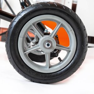 Velké nafukovací pneumatiky zajistí komfort a pohodlí při jízdě na jakémkoli povrchu. Motokára má zabudovaný řetězový pohon s možností odpojení pohonu - funkce volnoběžky a ruční brzdu na zadní nápravě.