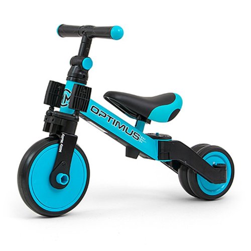 Univerzální dětská šlapací tříkolka Milly Mally 3v1 Optimus byla navržena tak, aby se stala tím nejlepším co můžete nabídnout svému malému závodníkovi. Díky stabilní konstrukci poskytuje dítěti maximální úroveň bezpečnosti a tímto mu usnadňuje získávání nových dovedností. Největší výhodou této tříkolky je její variabilita. Jakmile dítě získá základy jízdy, připojíme pedály nebo jí během okamžiku změníme na klasické jednostopé odrážedlo. Pěnová kola výborně absorbují rázy, poskytují dobrou přilnavost, zajistí pohodlí během jízdy a neunaví vašeho malého závodníka. Dostatečný rozvor kol poskytuje mimořádnou stabilitu, bezpečnost během používání doma i venku. Doraz nedovolí přetočení řídítek.