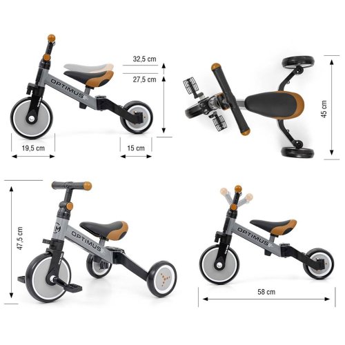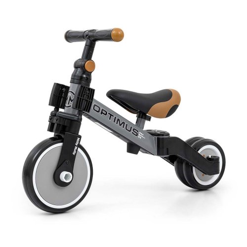 Univerzální dětská šlapací tříkolka Milly Mally 3v1 Optimus byla navržena tak, aby se stala tím nejlepším co můžete nabídnout svému malému závodníkovi. Díky stabilní konstrukci poskytuje dítěti maximální úroveň bezpečnosti a tímto mu usnadňuje získávání nových dovedností. Největší výhodou této tříkolky je její variabilita. Jakmile dítě získá základy jízdy, připojíme pedály nebo jí během okamžiku změníme na klasické jednostopé odrážedlo. Pěnová kola výborně absorbují rázy, poskytují dobrou přilnavost, zajistí pohodlí během jízdy a neunaví vašeho malého závodníka. Dostatečný rozvor kol poskytuje mimořádnou stabilitu, bezpečnost během používání doma i venku. Doraz nedovolí přetočení řídítek.