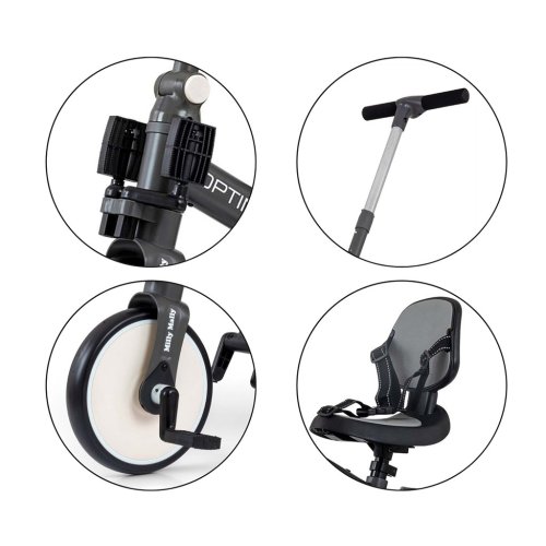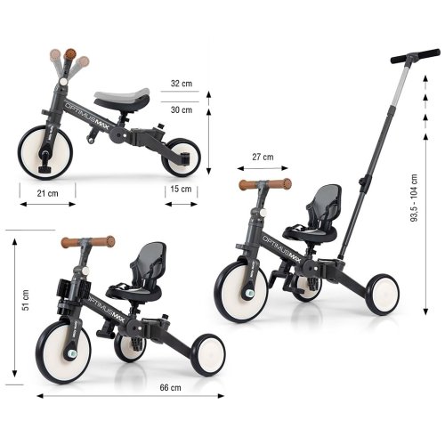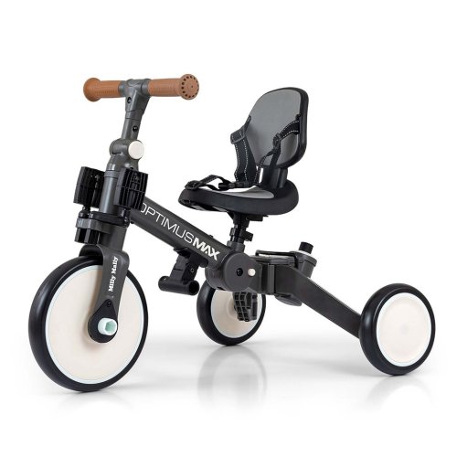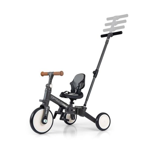 Optimus Max byl navržen tak, aby se stal jednou z nejlepších voleb pro první vozidlo vašeho dítěte. Díky stabilní tříkolové konstrukci poskytuje dítěti odpovídající úroveň bezpečnosti a usnadňuje získávání nových dovedností. Když má dítě již zvládnuté základy jízdy a nevyžaduje pomoc rodiče prostřednictvím řídicí rukojeti, můžeme přidat pedály nebo jej přeměnit na klasické odrážedlo.