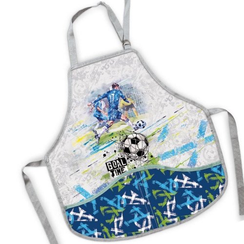 Dětská zástěra GOAL TIME na výtvarnou výchovu zabrání zašpinění oblečení a je nedílnou součástí školních pomůcek. <br> • je měkká na dotyk a ušita z nepropustného materiálu <br> • vhodná pro děti od 5 let