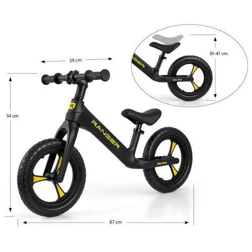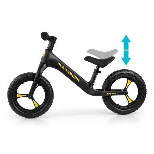 Odolná a vyrobená nejnovější technologií EVA pěny, 12" kola odolná proti propíchnutí, která není třeba nafukovat, jsou bezúdržbová. Ergonomické, výškově nastavitelné sedlo s měkkou výplní zajišťuje dítěti pohodlí při jízdě a roste s dítětem. Kolo Ranger má řídítka v kuličkových ložiskách, rovněž kola s kuličkovými ložisky. Protiskluzové rukojeti z měkké gumy zajišťují pevné uchopení a pohodlné vedení.