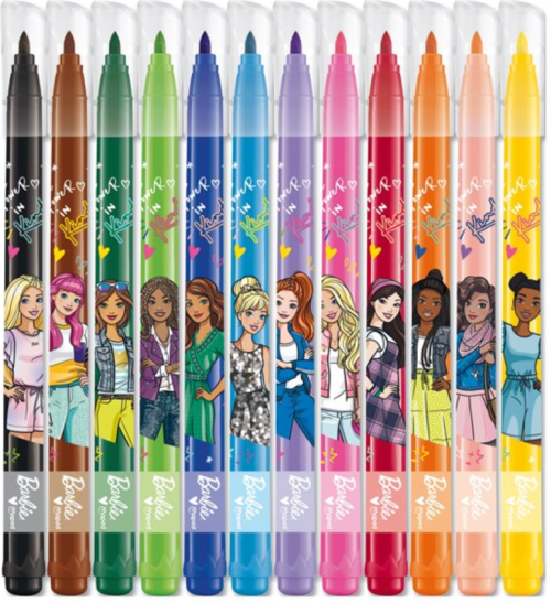 Souprava 12 barevných fixů Maped s atraktivním designem oblíbené panenky Barbie.