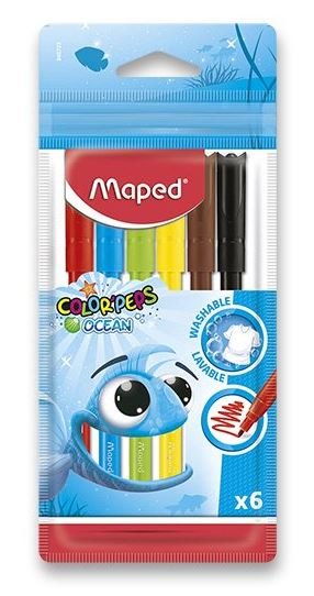 PŘEDNOSTI barevných fixů Maped ColorPeps, * BEZPEČNOST - prodyšný uzávěr, * ODOLNOST - hrot odolný proti zatlačení či poškození, * VYPRATELNÉ - inkoust vypratelný z většiny textilií při praní v pračce na 40°C, [zvýrazňovač 2 mm], [odolný proti zatlačení][pratelné] [tah]