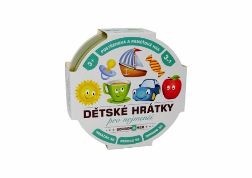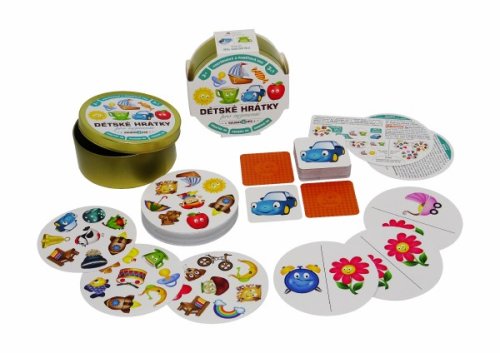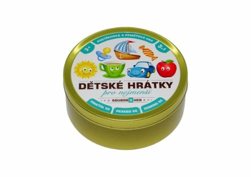 Zábavná karetní postřehová hra balená v malé plechové krabičce. To jsou Dětské hrátky, které obsahují tři zábavné karetní hry: Hmaťáka, Domino a Pexeso. Děti si zábavnou formou zlepšují postřeh a paměť. Jednoduchá pravidla a krásně malované obrázky. Rozměry výrobku 10 x 10 x 4 cm. Vhodné pro děti od 3 let.