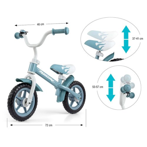 Dětské odrážedlo-kolo Milly Mally Dragon je ideální, když se dítě učí udržet rovnováhu. Je tou nejlepší alternativou pro kolo s bočními kolečky, takže pozdější jízda na klasickém kole bude mnohem jednodušší. Kolo je bez pedálů, díky čemuž se dítě dokáže soustředit hlavně na držení rovnováhy a směr jízdy.