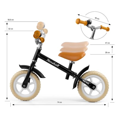 Jízda na odrážedle je ideální pro učení rovnováhy, takže pozdější jízda na klasickém kole bude mnohem jednodušší. Kolo je bez pedálů, díky čemuž se dítě dokáže soustředit hlavně na držení rovnováhy a směr jízdy. Odolné pneumatiky na bílých ráfcích, vyrobené z pěny EVA, jsou trvanlivé a nevyžadují huštění. Díky ergonomicky tvarované a výškově nastavitelné sedlovce s měkkou výplní, kolo spolu s vašim dítětem poroste. Výškově nastavitelná řídítka jsou uložena v kuličkovém ložisku. Protiskluzové gumové rukojeti zajistí dítěti bezpečný úchop a pohodlnou manipulaci. Klasický a ergonomický design kola zaručí dlouhou životnost a pohodlí během používání. Ocelový rám odrážedla poskytuje ještě větší odolnost a jeho kontrukce je přizpůsobena k dlouhodobému užívání.