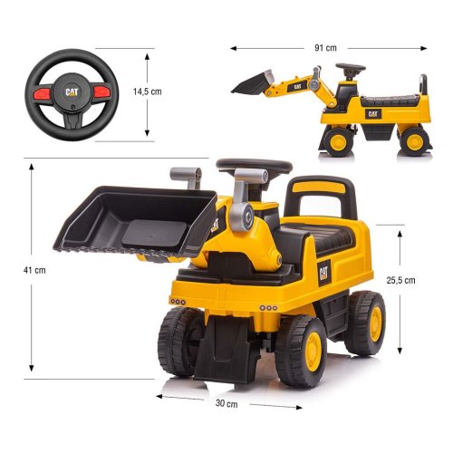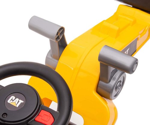 Licencovaný nakládač CAT je odrážedlo, při jehož výrobě byla věnována pozornost i těm nejmenším detailům a kvalitě použitých materiálů. Každého malého fanouška potěší možnost ovládat "rameno" a "lopatu" nakladače, stejně jako volant s realistickým zvukem klaksonu.