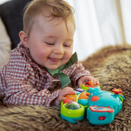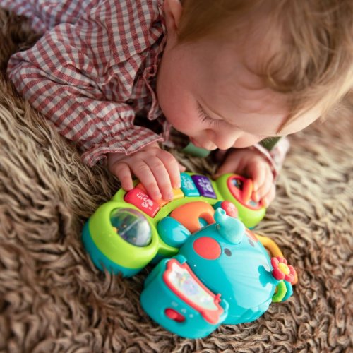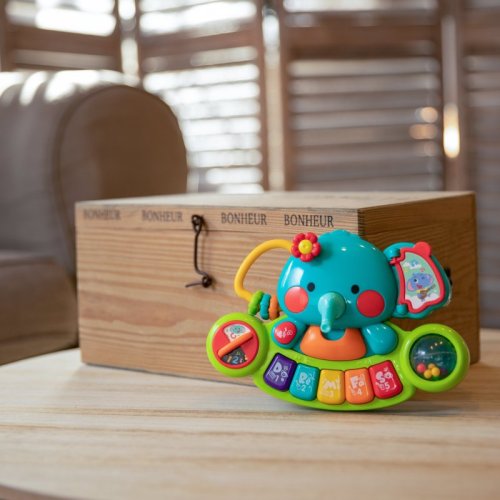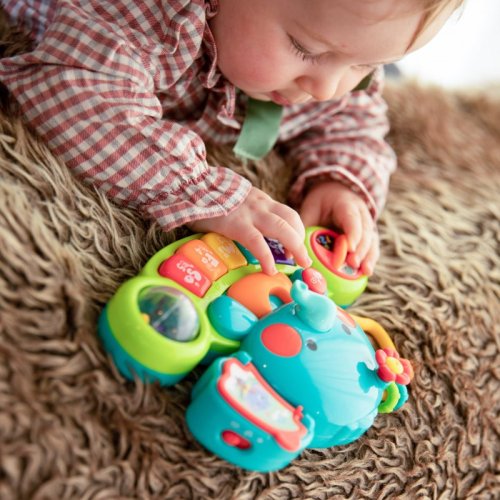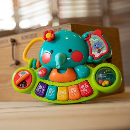 Plastové piánko obsahující několik interaktivních a pohyblivých částí, které rozvíjejí zručnost a jemnou dětskou motoriku.