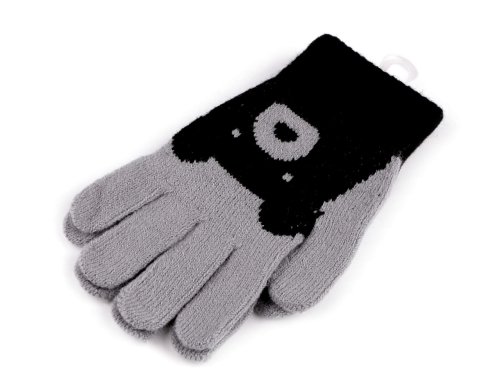 [Dětské pletené rukavice jsou z obou stran ozdobené motivem medvídka. Jsou vyrobené z pružné, hřejivé pleteniny, která se ruce skvěle přizpůsobí.] Díky pružnému lemu kolem zápěstí pevně drží - nesklouzávají. Jsou ideálním doplňkem do sychravého podzimního a zimního počasí. Šířka je měřená na volně položených rukavicích uprostřed (bez palce). Rukavičky mají univerzální velikost (jsou natahovací), doporučujeme je pro děti [cca 3-6 let.]
