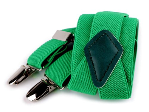 Dětské šle o délce 80 cm a šířce 2,5 cm. Jde o kvalitní tkaný český výrobek. Šle jsou vyrobené ze 75% polyesteru a 25% elastodienu. Originální balení obsahuje 10 ks šlí v náhodném barevném mixu. Vhodné jsou pro kluky i děvčata. Přichycují se pomocí kovových žabek obdélníkového tvaru. [Šle jsou určené pro výšku postavy 140 - 160 cm.]