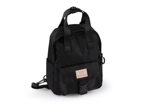 [Dětský textilní batoh] je ušitý z pevné látky, má nastavitelné popruhy. [Je ozdobený štítkem z eko kůže s obrázkem medvídka.] Hlavní kapsa je prostorná se zapínáním na dvoucestný [zip. Na] přední straně batohu je [kapsa se zapínáním na plastovou sponu. Na bocích jsou další menší kapsy.] Nahoře má batoh dvě praktická ucha na nošení v ruce nebo na pověšení.