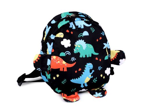 Malý textilní batůžek s motivem dinosaurů si děti zamilují na první pohled. Určitě je zaujmou i přečnívající tlapky na přední straně. Batoh má jednu hlavní kapsu, která se uzavírá na zip. Uvnitř má batoh podšívku. Popruhy jsou nastavitelné na vhodnou velikost - minimální délka je 33 cm, maximální 67 cm. Batoh má také praktické poutko na zavěšení.