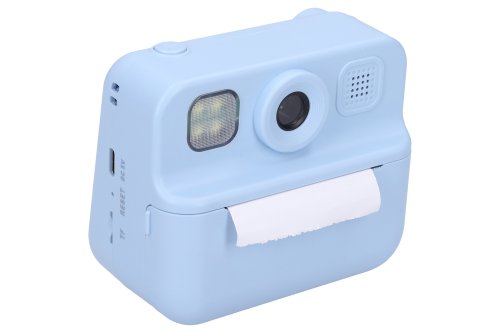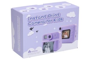 Dětský digitální fotoaparát s tiskárnou - foto 12Mpx, video Full HD. Rozměry 9,9x5,8x8,3 cm. Rozlišení fotografií 12 megapixelů, videa Full HD (1920x1080). Nastavení kvality tisku. Blesk, selfie kamera, časovač, sériové snímání, digitální zoom, vložení času, různé efekty (rámečky, vložené animace, filtry) fotografií, hry, mp3 přehrávač, 2,0 palcový displej. Jedno tlačítko pro focení a natáčení. Vestavěná 1200mAh baterie, provoz 180 min, nabíjení 3-4 h, USB-C kabel součástí. Šířka fotopapíru 5,5 cm.