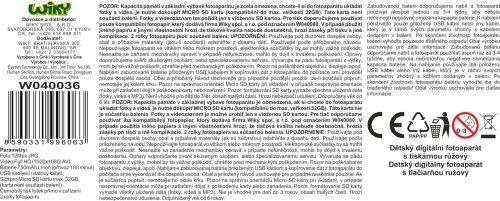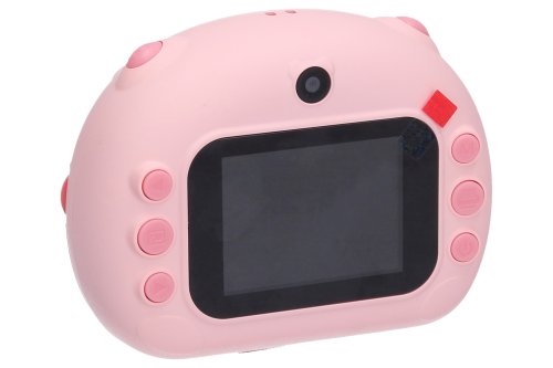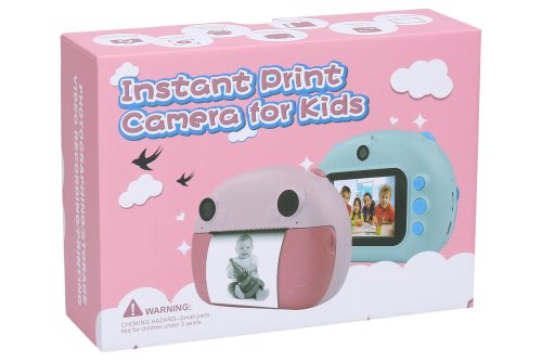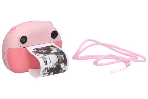 Dětský digitální fotoaparát s tiskárnou růžový - foto 12Mpx, video Full HD. Rozměry 11x4,5x8,5 cm. Rozlišení fotografií 12 megapixelů (4800x2656), videa Full HD (1920x1080). Nastavení kvality tisku. Selfie kamera, časovač, sériové snímání, vložení času, různé efekty (rámečky, vložené animace, filtry) fotografií, hry, mp3 přehrávač, 2,4 palcový displej. Zvlášť tlačítka pro focení, pro natáčení videa, pro tisk fotografií. Vestavěná 750mAh baterie, provoz 180 min, USB kabel součástí. Šířka fotopapíru 5,5 cm, tisknutelná šíře 4,8 cm. 2 role fotopapíru a popruh součástí. Kompatibilní s micro SD kartami - max. 32 GB. Paměťová karta není součástí.